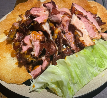 충분히 익힌 오리고기를 꺼내 얇게 썰어 전병용 밀전병이나 또띠아 위에 올리고, 파채와 함께 말아 먹으면 성동구 진흙오리전병과 유사한 풍미를 느낄 수 있습니다. 여기에 고추냉이 소스나 간장 베이스 소스를 곁들이면 더욱 깔끔한 맛을 즐길 수 있습니다.