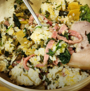 취나물, 고사리, 곰취 같은 산나물을 데친 뒤 된장이나 집간장으로 가볍게 무쳐 하루 이상 숙성시킨다. 이 과정이 발효산나물밥의 핵심이다.