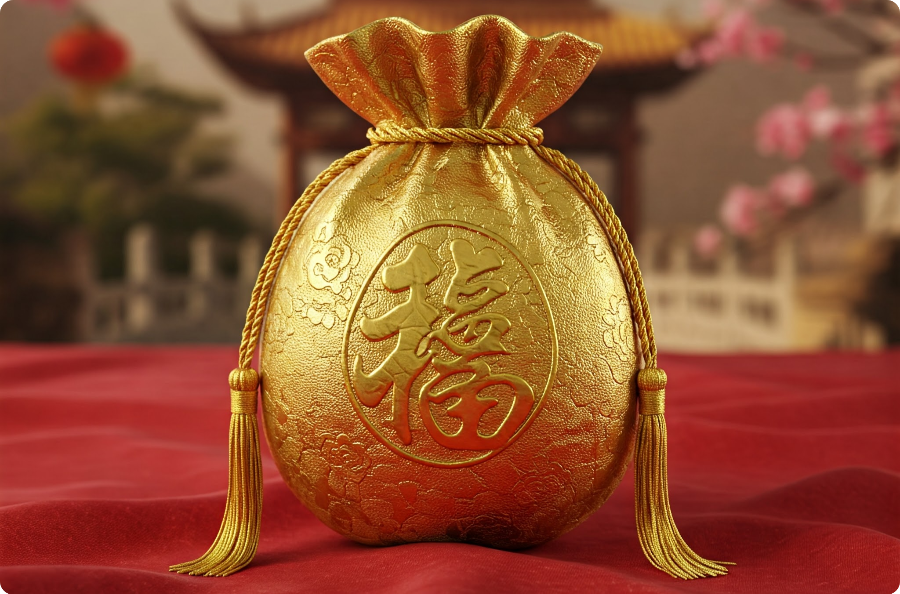 복주머니는 풍수지리에서 재물운을 가져오는 소품으로, 황금색 복주머니는 특히 재물운을 불러오는 데 효과적입니다.