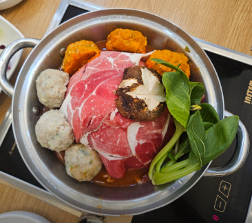 국물이 끓을수록 만두 속 육즙이 퍼지며 천안 굴림만두 전골의 진한 풍미가 살아난다.