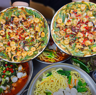이곳은 고창 조개와 상황버섯 육수를 기반으로 깔끔하면서도 깊은 맛을 완성한 것이 특징이다. 특히 장한평 해물샤부칼국수, 보쌈을 함께 즐길 수 있는 구성은 든든한 한 끼를 원하는 직장인과 가족 단위 손님에게 인기가 높다.