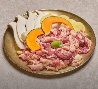 돌판 오리양념주물럭 (200g) 26,000원 돌판에서 구워내는 매콤달콤한 오리 주물럭