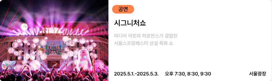 2. 서울 스프링 페스타 빛과 음악이 어우러진 디지털 예술, ‘시그니처쇼’와 도심 야간 퍼레이드