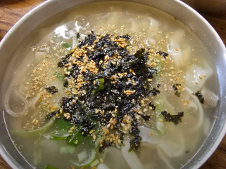 국물에는 애호박, 양파, 두부를 더해 담백함을 살리고, 소금으로만 간을 맞추면 강릉 순감자옹심이 특유의 맛을 살릴 수 있습니다. 여기에 김가루를 살짝 얹으면 풍미가 한층 살아납니다.