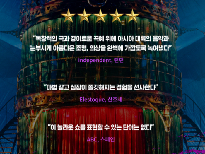 - 화려한 비주얼: 전통 서커스와 현대적인 의상, 무대 디자인의 조화