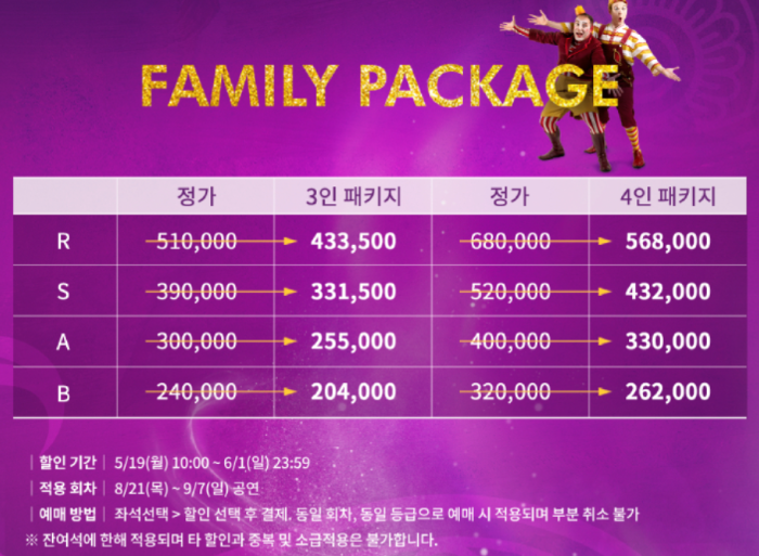 | EXCITING석 | 220,000 | 무대와 가까운 위치, 생생한 곡예 관람 |