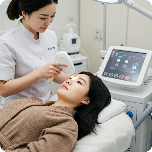 레이저는 피부의 콜라겐을 자극하여 장기적인 피부 탄력과 재생 효과를 기대할 수 있습니다.