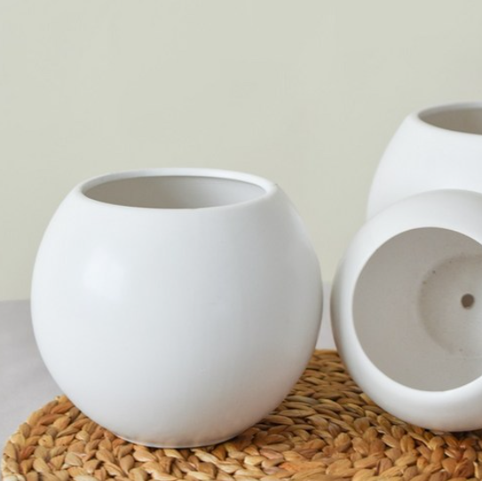 무광 화이트 컬러와 부드러운 곡선이 살아있어 식물을 심었을 때 더욱 자연스러운 조화를 이룹니다.