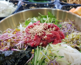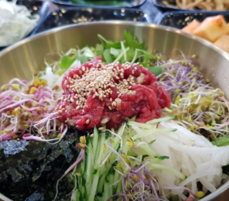 육회 비빔밥 또한 빼놓을 수 없는 인기 메뉴로, 육향 가득한 한우와 싱싱한 채소, 특제 소스가 완벽한 조화를 이룹니다.