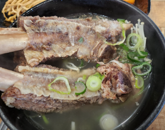 - 그릇에 담아 대파 송송 썰어 올려주면 든든한 한우목갈비탕이 완성됩니다.