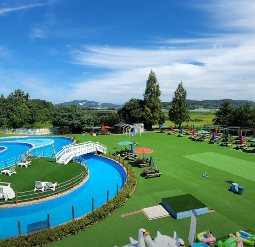 경기 안성시 죽산면 매산리 426-1에 자리한 '원더풀 도그베이'는 반려견 전용 워터파크로, 반려견과 보호자가 함께 물놀이를 즐길 수 있는 신개념 피서지입니다.