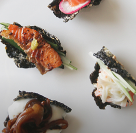 - 김에 찹쌀풀 바르기: 김 한 장을 펼치고 찹쌀풀을 얇게 펴 바릅니다. 그 위에 다른 김 한 장을 덮고 다시 찹쌀풀을 바르는 과정을 반복하여 2~3장 겹쳐줍니다. (기호에 따라 참깨를 솔솔 뿌려줍니다.)