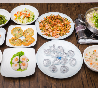 백합죽으로 시작하여 백합찜, 백합전, 백합탕 등 여러 가지 방식으로 조리된 백합 요리가 상다리가 휘어지게 차려져 나옵니다.