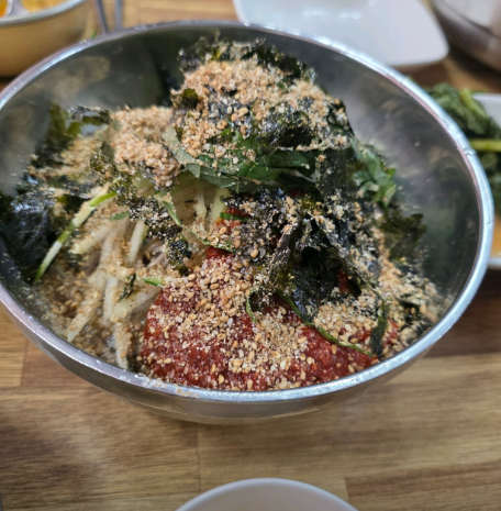 - 그릇에 담고 김가루를 뿌려줍니다.