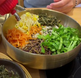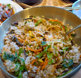 - 재료: 쌀 1컵, 보리 1컵, 각종 나물 (시금치, 콩나물, 도라지, 고사리 등), 달걀 1개, 고추장, 참기름, 통깨