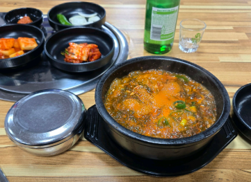 둘째, '캡사이신 없이 맛있게 매운맛, 용가리국'이라는 별명처럼 인위적이지 않은 자연스러운 매운맛을 자랑합니다. 전국 유명 해장국집의 양념 비법을 공수하여 섞어 만든 특제 양념은 먹을수록 끌리는 중독성 강한 매운맛을 선사합니다. 홍게해장국 역시 이 매운 맛의 조화가 훌륭합니다.