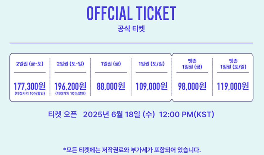 - 공식 티켓 2일권(토-일): 174,400원