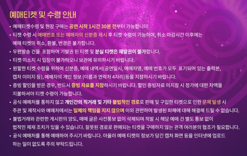 티켓 예매는 아래 공식 예매처를 통해 가능합니다. 빠른 예매를 위해 미리 회원가입과 배송 주소 확인을 추천드립니다: