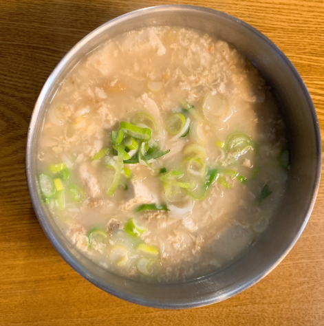 - 재료: 북어채 1줌, 계란 1개, 다진 마늘 1큰술, 국간장 1큰술, 참기름 1큰술, 물 5컵, 대파 약간