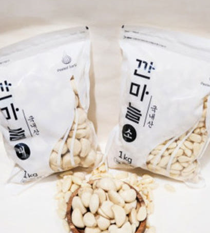 - 깐 **마늘**은 물에 깨끗이 씻어 물기를 완전히 제거합니다. (물기가 남아있으면 변질될 수 있습니다.)
