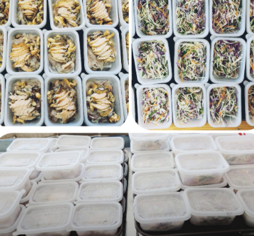 - 재료: 활어회 (광어, 우럭 등) 200g, 오이 1/2개, 당근 1/4개, 양파 1/4개, 깻잎 5장, 통깨 약간, 소면 또는 밥