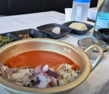 둘째, 냄비에 담아 나오는 푸짐한 양과 비주얼입니다. 시각적으로도 풍성함을 느낄 수 있으며, 여럿이 함께 즐기기에도 부족함이 없습니다. 이 때문에 '스페셜 냄비물회 '는 더욱 인기가 많습니다.